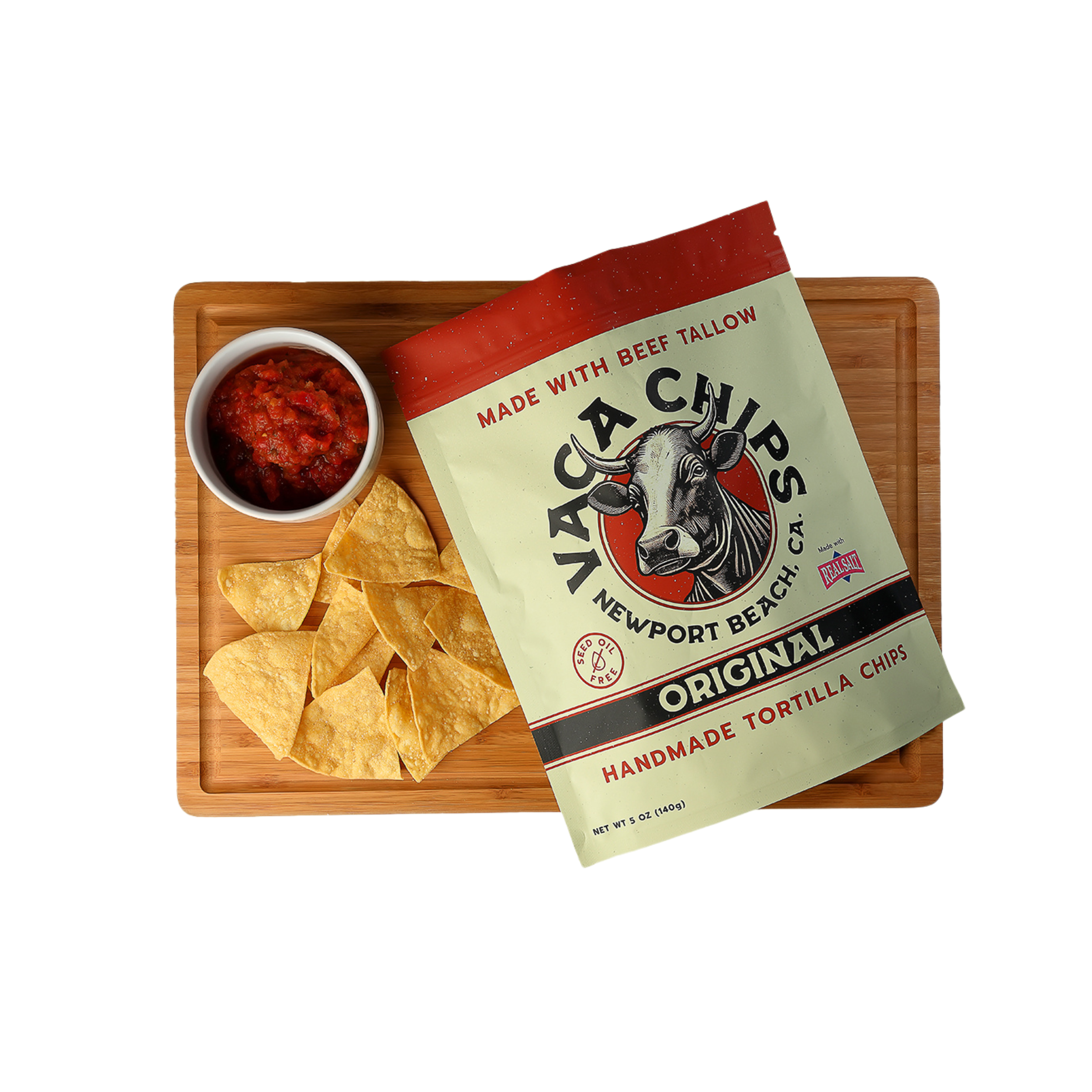 Vaca Chips are chef-crafted, restaurant-style tortilla chips made from just three ingredients: organic corn, Redmond Real Salt®, and hormone and antibiotic-free beef tallow sourced from Southern California farms. Fried in small batches for a warm, blistered crunch and rich flavor, these chips are a clean, crave-worthy alternative to seed oil–fried snacks. 100% seed-oil free.